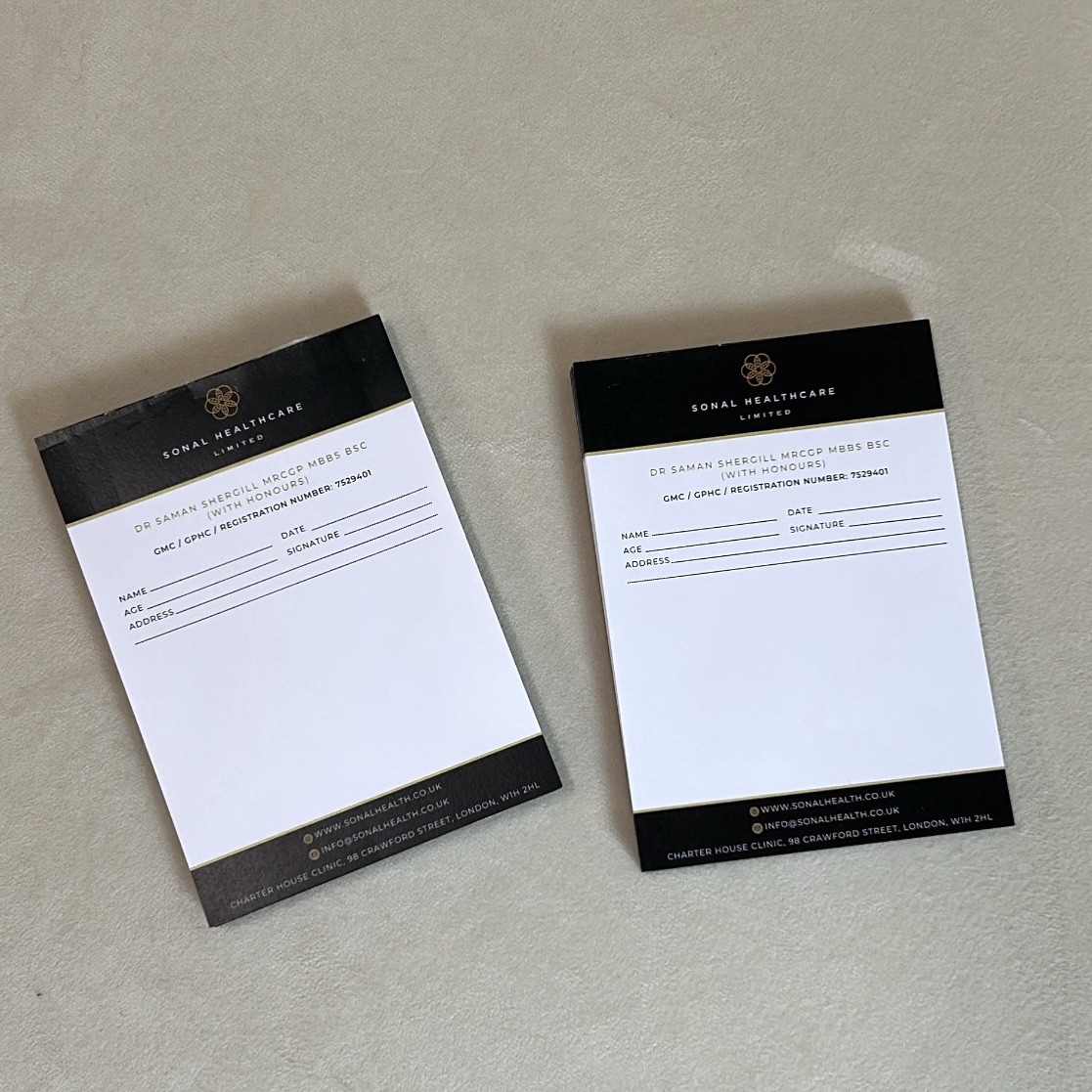 Our prescription pads are printed in A6 size as standard. If you require a larger size, please enquire for custom options.